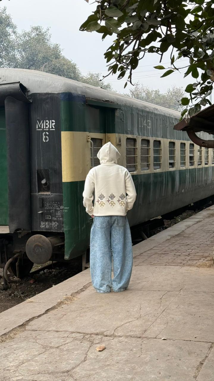 Soft-toned hoodie featuring hand-drawn geometric accents, made for slow days, long platforms, and thoughtful movement.